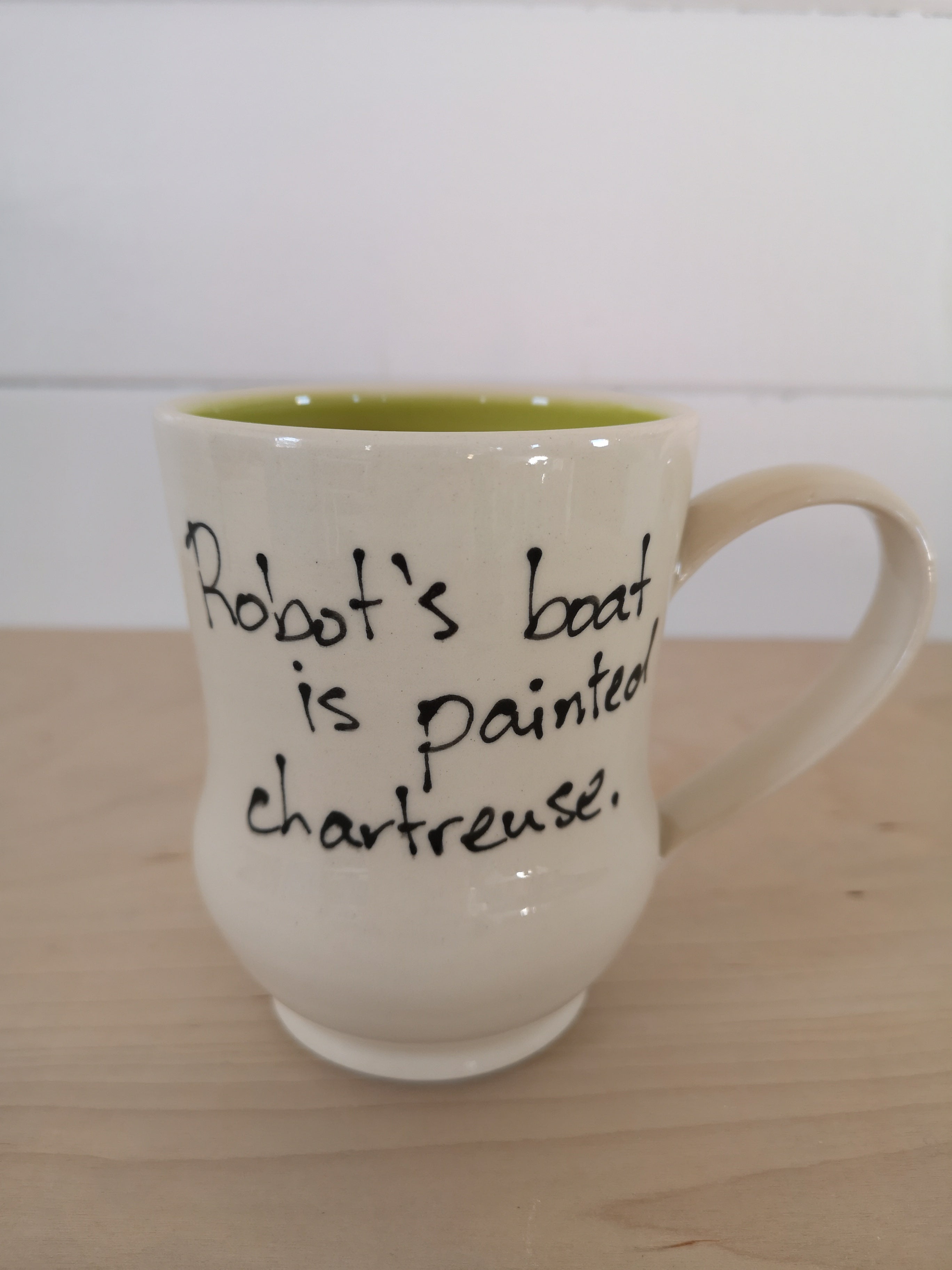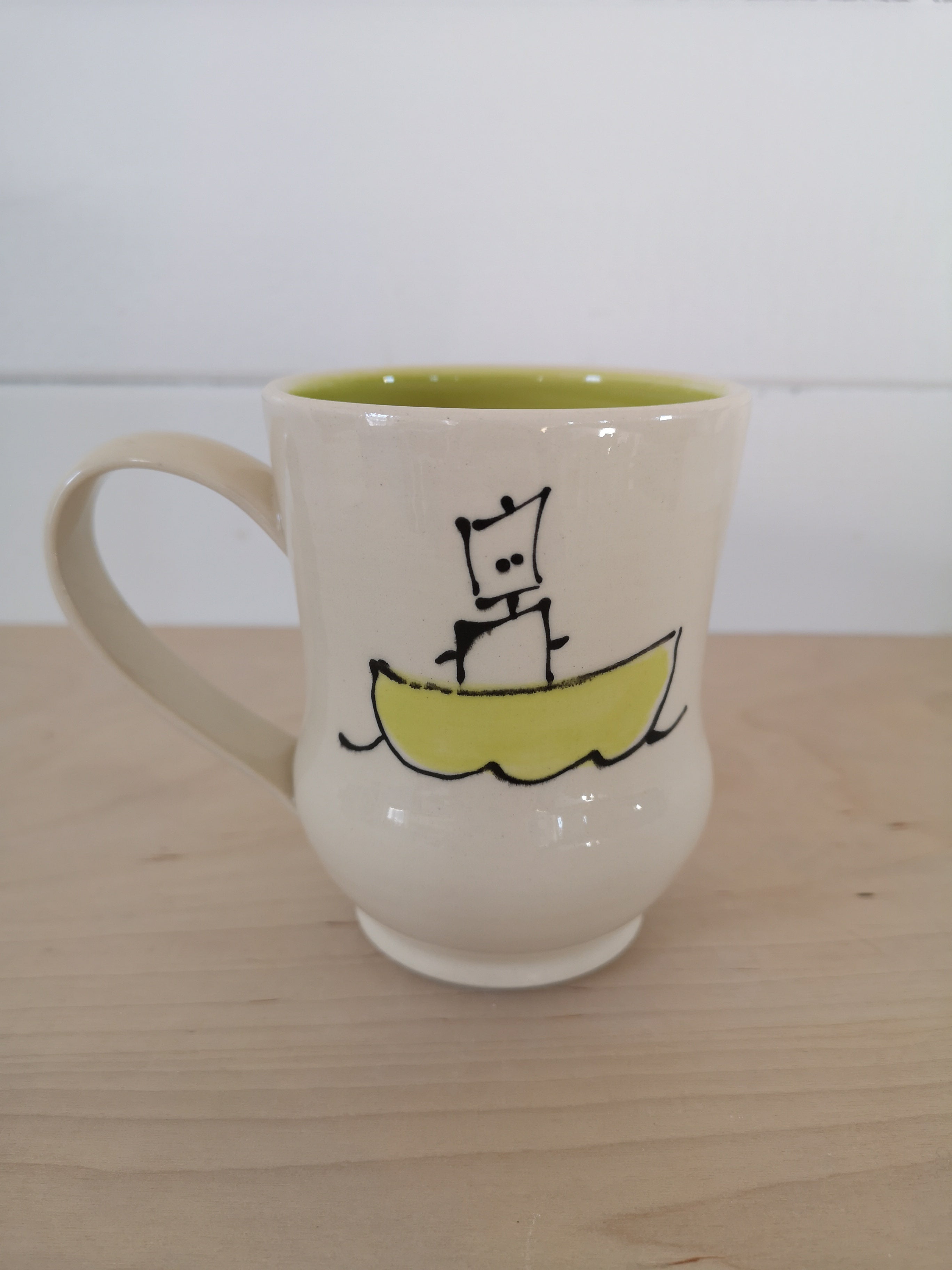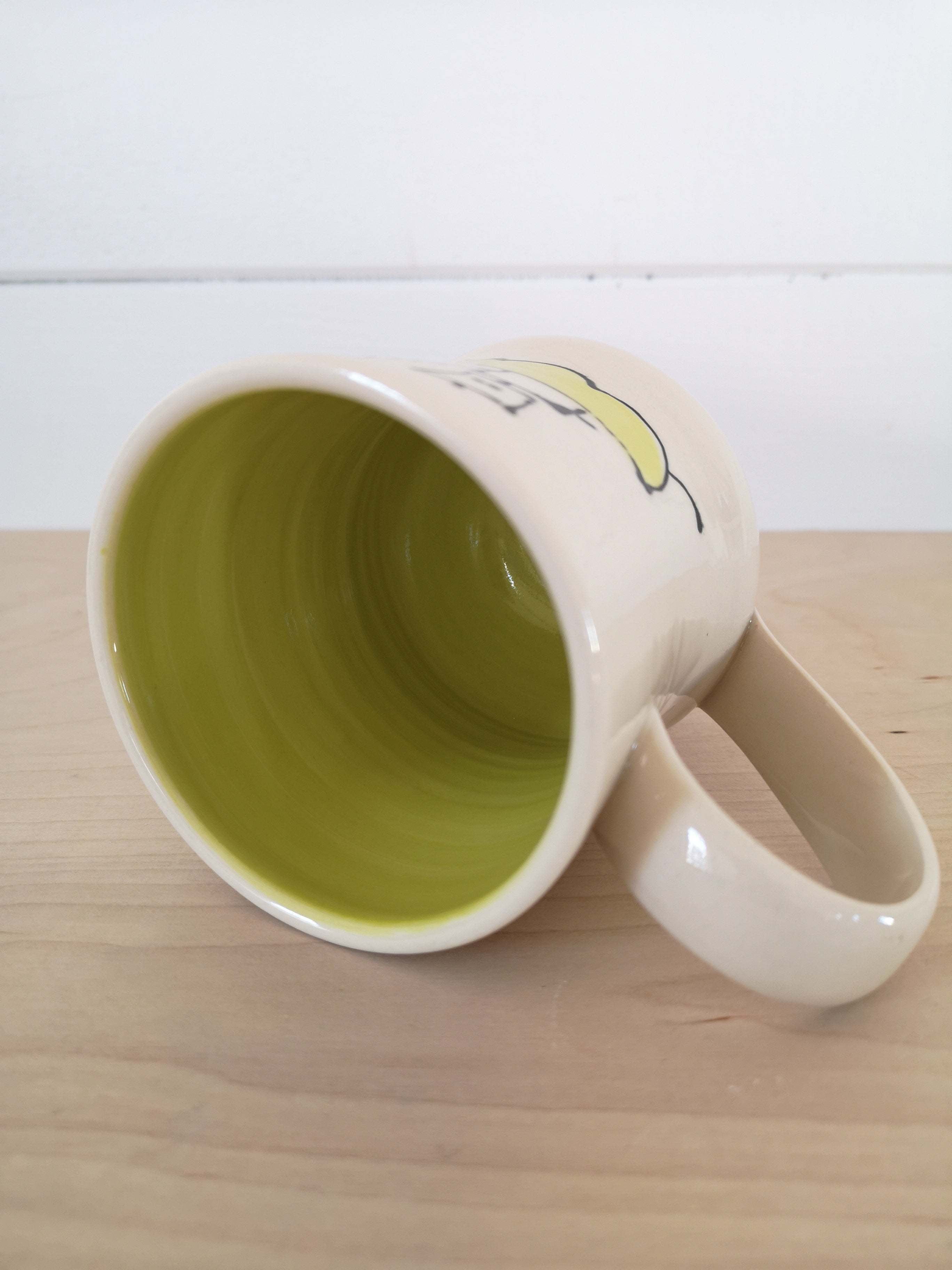 This handmade porcelain mug holds about 475mL/16oz.