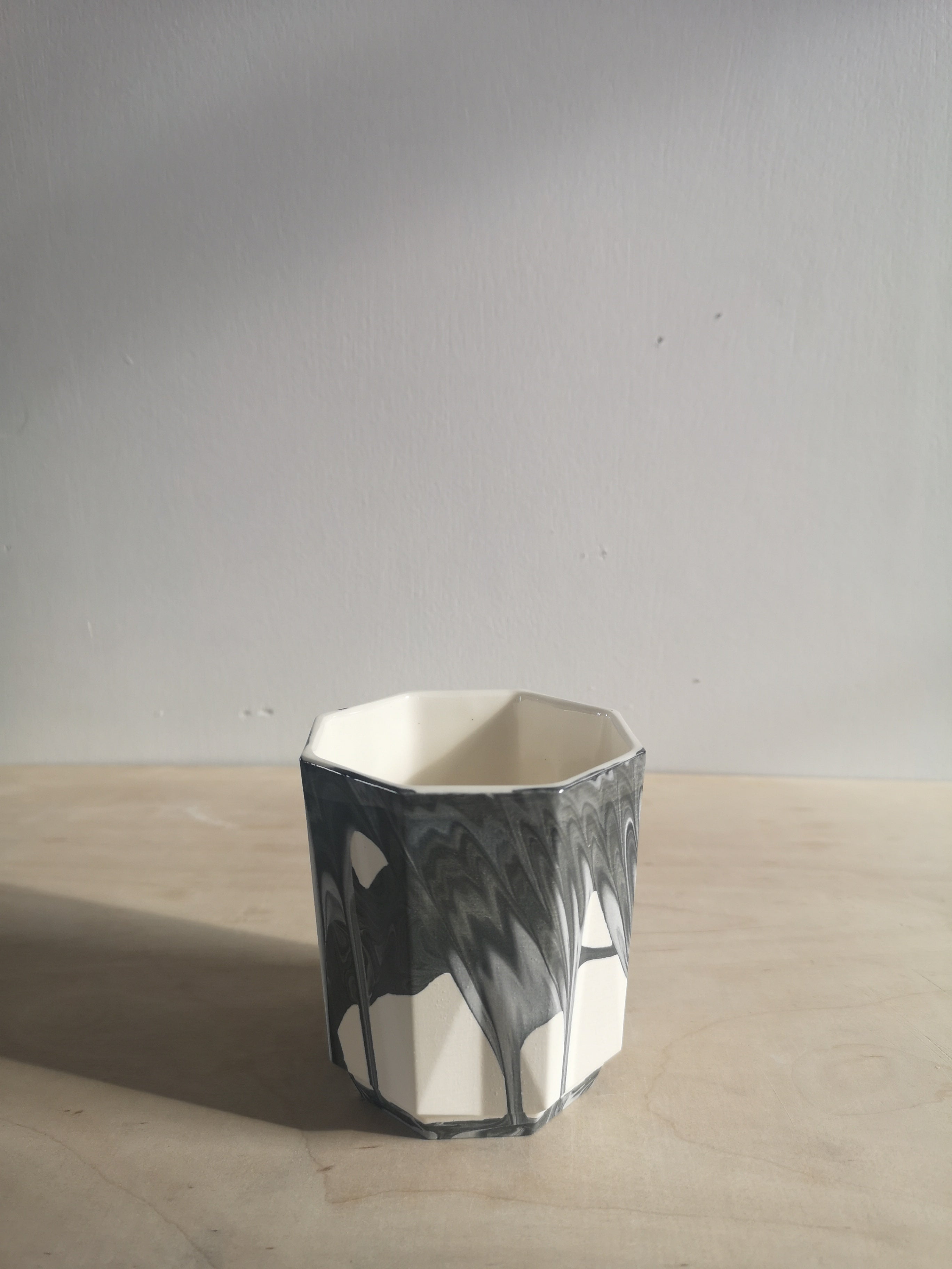 Black and white marbled tumbler cast in porcelain. Perfect for a refreshing lemonade or fancy cocktail.