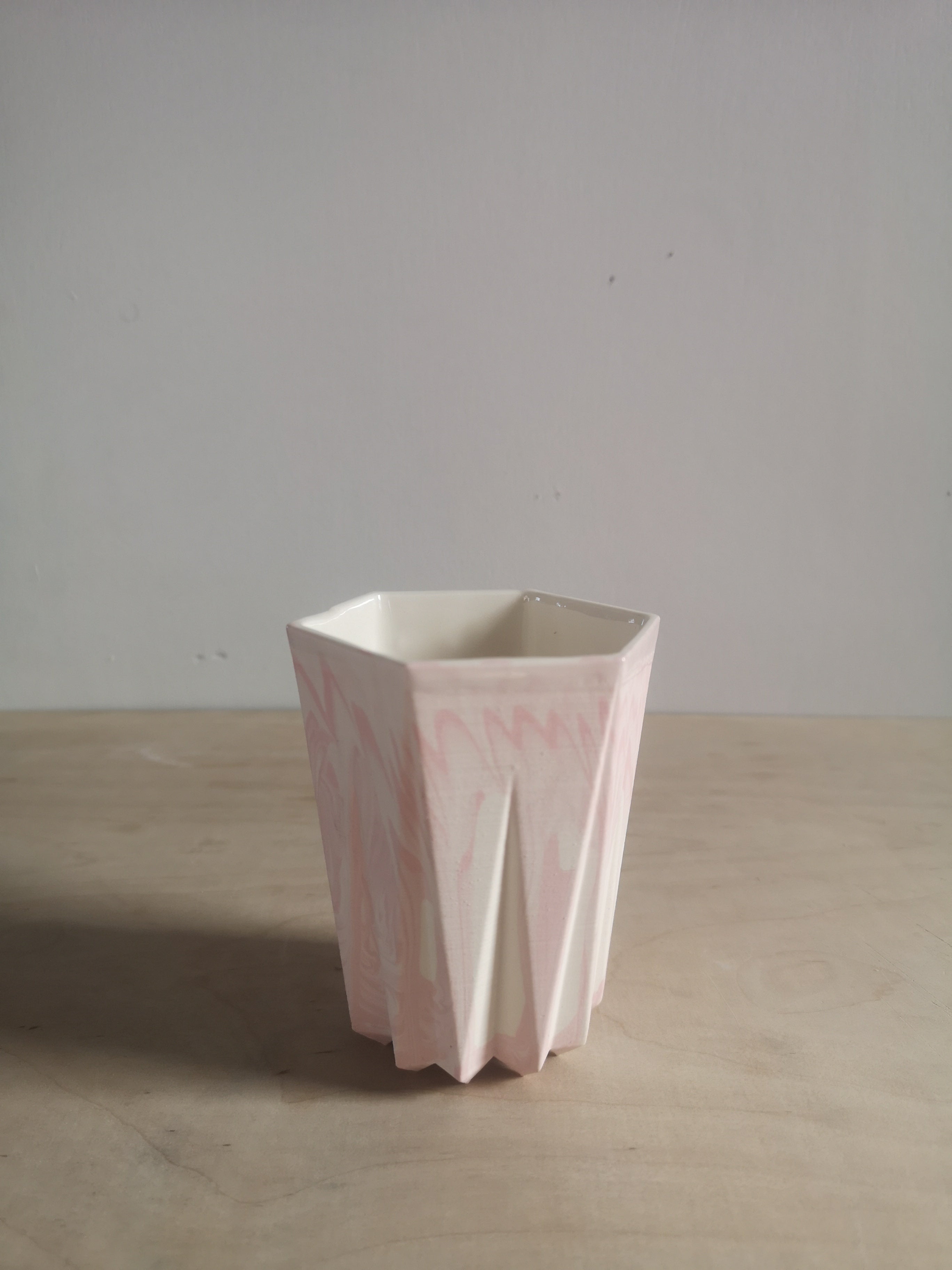 Pink and white marbled tumbler cast in porcelain. Perfect for a refreshing lemonade or fancy cocktail.